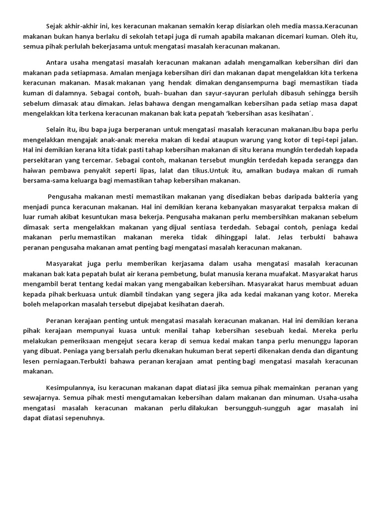 Berikut adalah contoh karangan cara-cara menangani masalah penyakit. Variasi soalan ini adalah untuk menguji kemampuan para pelajar untuk memberikan isi-isi penting dan huraian yang menarik agar dapat menjawab soalan dengan tepat serta penggunaan bahasa yang betul. CONTOH KARANGAN BAHAGIAN A SPM Lihat gambar di bawah dengan teliti.